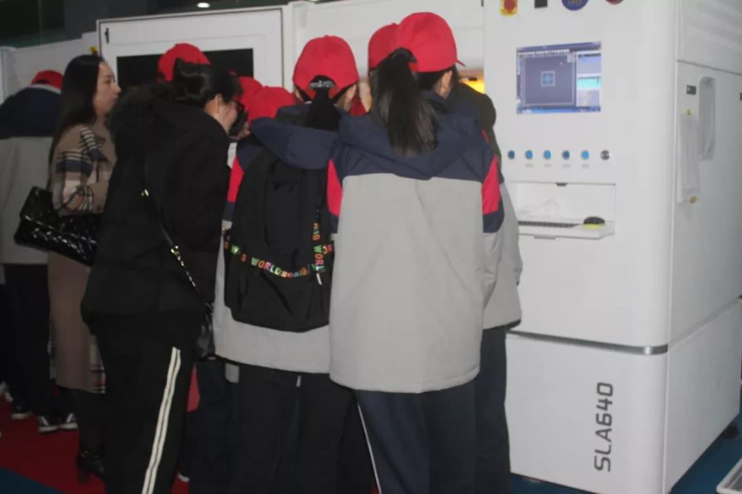 在3D打印樣品間,同學(xué)們看到了由不同材料打印成型的各個(gè)領(lǐng)域的產(chǎn)品。琳瑯滿目的樣品再次激起了同學(xué)們對(duì)3D打印的好奇心,也使同學(xué)們加深了對(duì)3D打印技術(shù)應(yīng)用的認(rèn)識(shí)。同學(xué)們仔細(xì)觀察結(jié)構(gòu)復(fù)雜的模型,聽取3D打印在大家日常生活學(xué)習(xí)中的應(yīng)用,感嘆3D打印的神奇。
